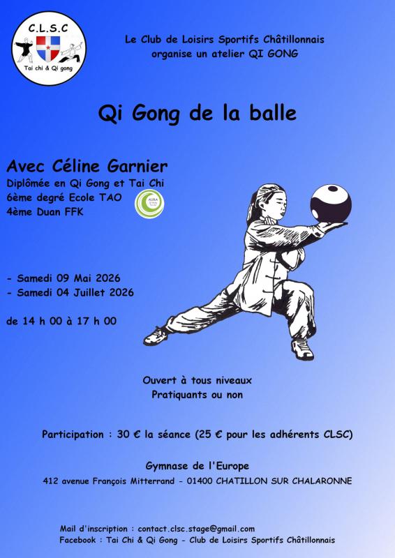 « Nous vous proposons un atelier sur le travail de la balle en Qi Gong, idéale pour développer la coordination, les perceptions tactiles et acquérir fluidité et souplesse.